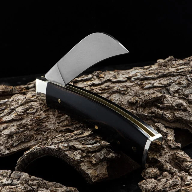 A very attractive medium sized pruning knife with a nickel end cap and Ebony Handle. Popular with gardeners, allotment holders and professional nurserymen. The C70 carbon steel blade provides a keen cutting edge and the blade shape makes it a very useful knife in the garden.