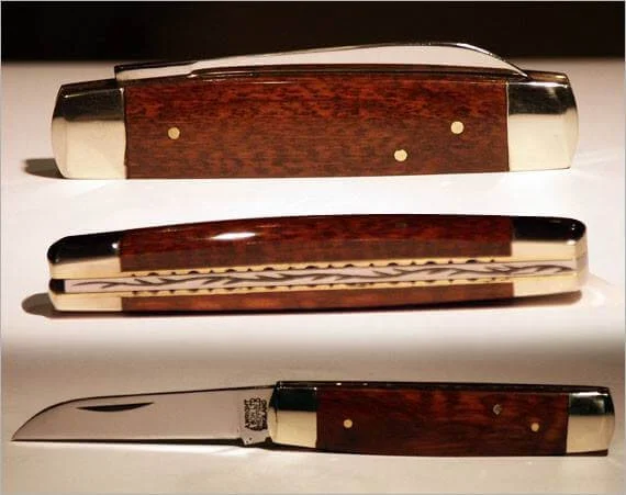 “Our exclusive Senator pocket knife has snakewood scales, worked backspring and nickel bolsters. Practical and very luxurious!”