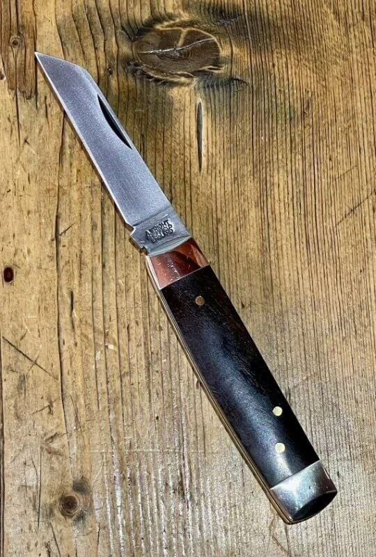 A. Wright & Son, Sheffield, England “Senator” Gentleman’s pocket knife, with Ebony scales and Lambsfoot blade. Double bolsters, fits nice in the pocket for an everyday carry. Great cutting blade to use in food preparation and other cutting tasks.