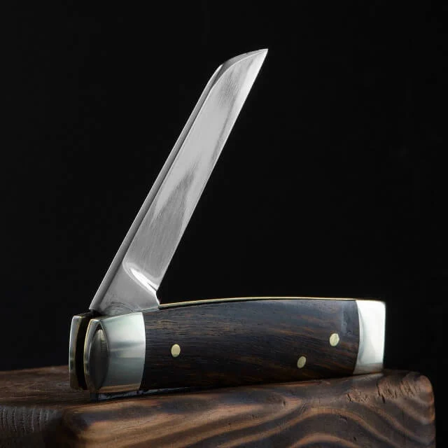 All A. Wright knives are hand made utilizing old Sheffield techniques and equipment, careful hand work ensures nice mechanics and a great feeling in hand. Small adjustments in how the spring, tang and liners all line up make for big differences in the operation of folding knives, these important time honored techniques are kept central to the A. Wright method.
