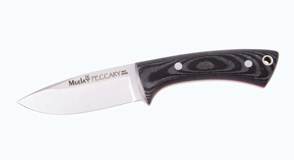 Peccary-8M Peccary-8.0 71mm blade, Neck Knife, Black canvas micarta, KYDEX sheath, The handle has a nice grip in black canvas effect micarta,a sheath of Kydex and paracord with a breaking strain of 550 lbs. This versatile knife, which shares similarities with the COLIBRI, is now available and is an attractive neck knife. This small knife is resilient, dynamic, aggressive and robust making it suitable for diverse situations.