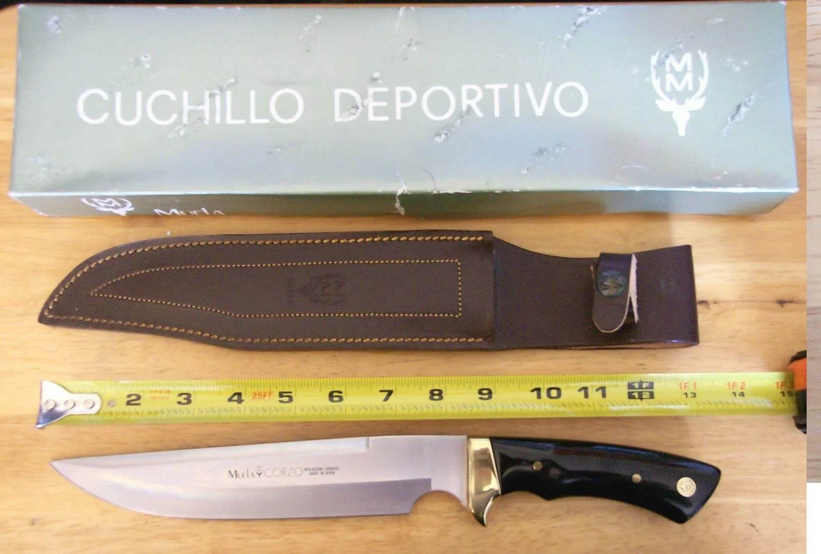 220mm blade full tang, the handle is made of beech, coloured black stabilised wood, and brass guard