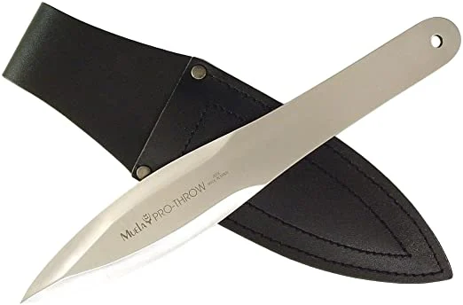 Pro-80L-14 professional throwing knife, well balanced, in 420H steel in a fine leather sheath.