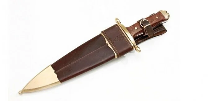 240mm blade,beech pakkawood & brass,with leather & brass ferrules sheath